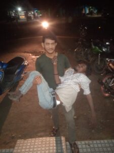 एंबुलेंस से लगातार कई प्रयासों के बावजूद संपर्क नहीं हो पाने पर सूरज मंडल जी ने एक पल भी न गँवाते हुए घायल को अपनी गोद में उठा लिया।