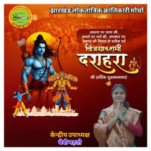 आदित्यपुर  : विजयादशमी के पावन अवसर पर स्थानीय श्री श्री सार्वजनिक दुर्गा पूजा समिति द्वारा आयोजित भव्य समारोह में इस बार उत्सव और श्रद्धा का संगम देखने को मिला।